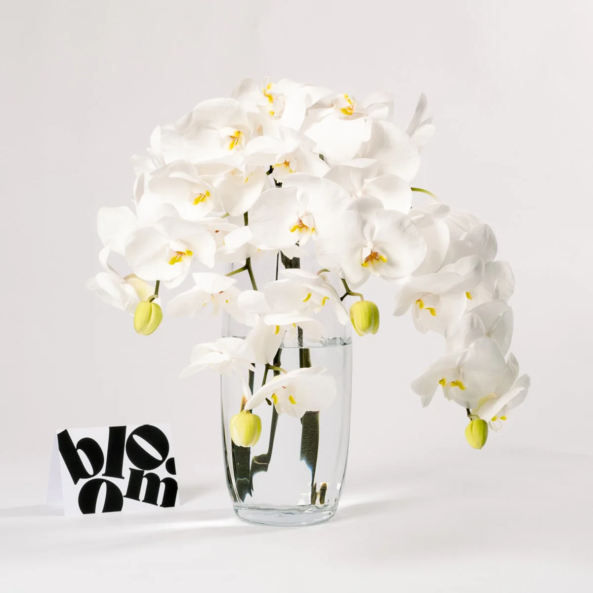Phalaenopsis Orchids create the most decadent setting when draped lovingly out of a chic tall vase around the home. Effortlessly luxurious, they always create a "wow" impact so are perfect when you are entertaining or gifting the joy of flowers. The name Orchid is derived from the Greek word “orkhis” which was named by an ancient Greek botanist named Theophrastus. Associated with fertility, sexuality & virility, they have long been appreciated as a bloom to share with someone you love and adore. In China, the orchid is regarded as an emblem of integrity, friendship & elegance.