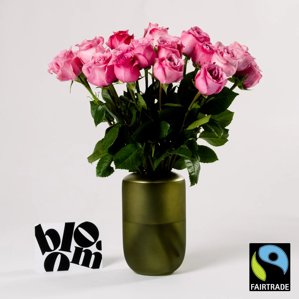 Bloom is proud to offer beautiful Fairtrade Cerise Pink roses, ethically sourced from Fairtrade Certified farms.
