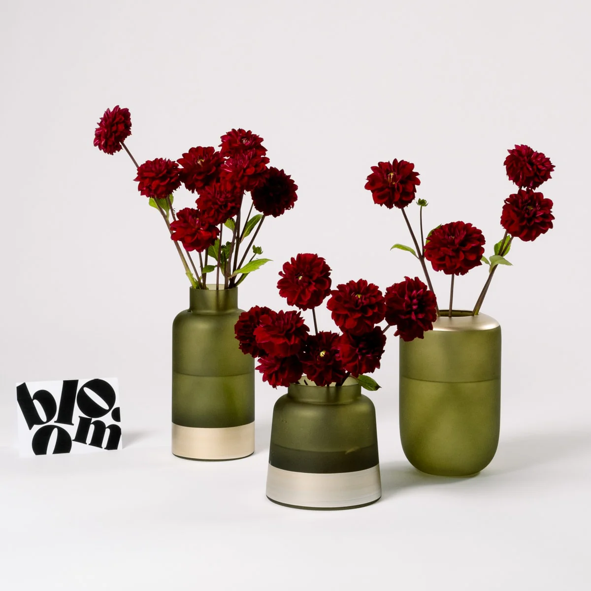 Dahlias are a mid-length flower variety and work best in a lower vase where they have room to express themselves.